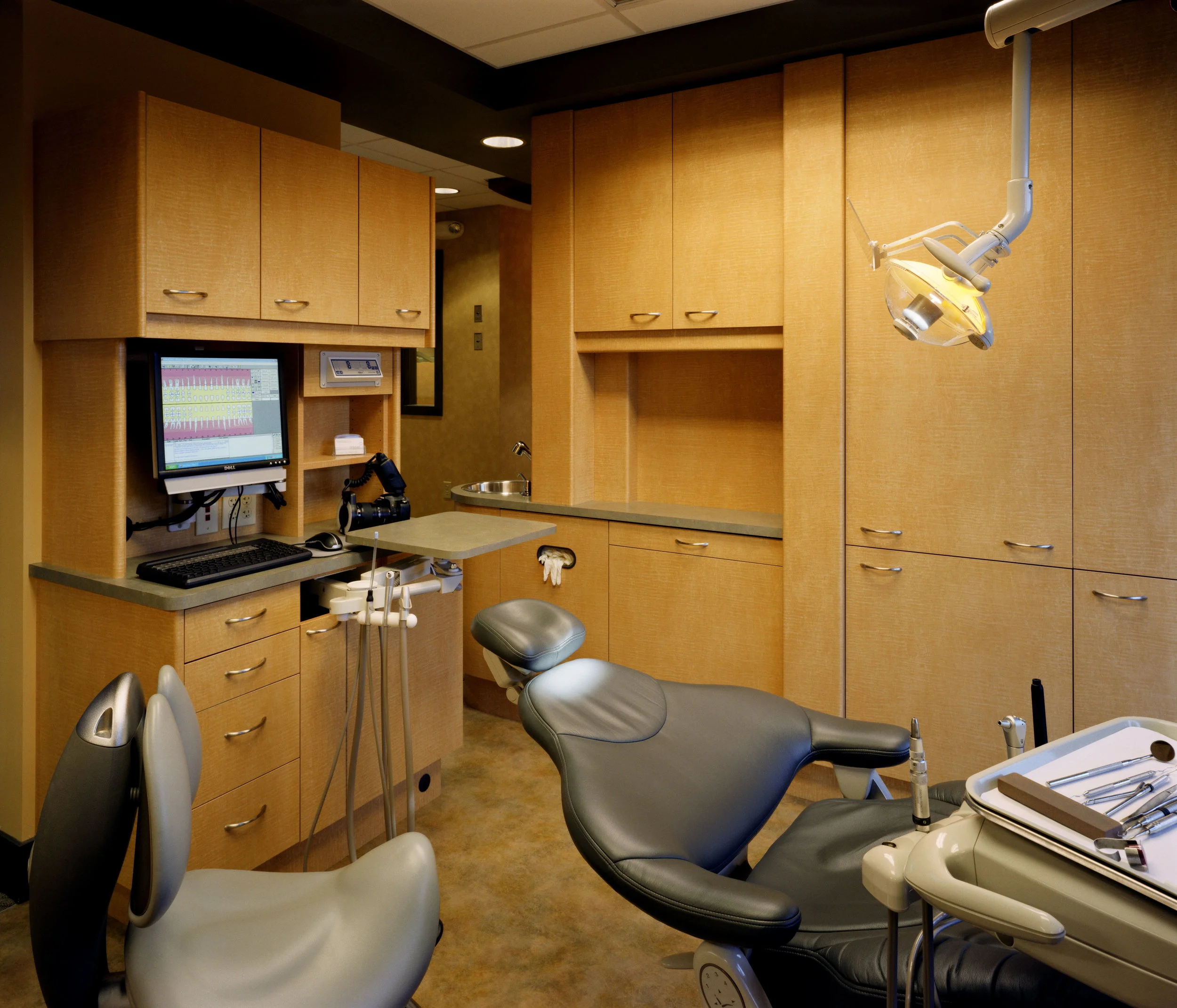 Our 12 0'Clock cabinets can accommodate your storage needs from instruments and control panels to computers with large screen monitors. We invest in the future and have 3.0 speed USB grommets to create easy access for your x-ray sensors, intraoral cameras and any future technology that may come along. Our monitor arms are on tracks and can move easily between the Doctor and assistant. And of course, they are fully customizable. The drawers can be configured in any arrangement you like or need, the convenience outlets placed where it best suits your needs and the finishes can be anything your heart desires, such as the curved aluminum framed doors with Lumicor inserts.